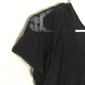 Sakkas Caftan Dress One Size Black Gauzy Embroidered Short Sleeve Boho