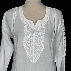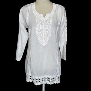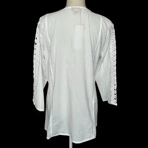 Sakkas Chloe 3/4 Sleeves Crochet Lace Top Tunic Women’s Size L Cotton White