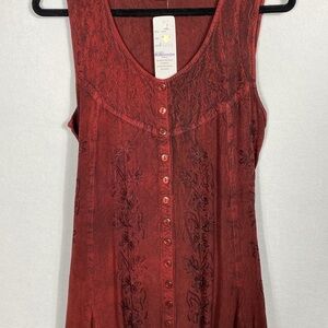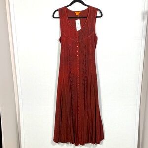 Chic sleeveless maxi dress by Sakkas. Features a rich red hue with button details. Perfect for any occasion.