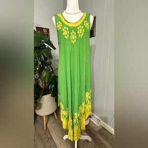 🛍️Sakkas one size sleeveless dress green and yellow embroidered.
