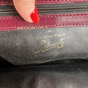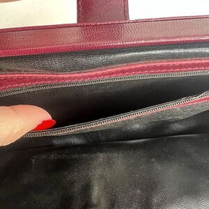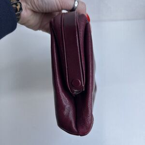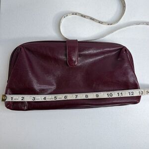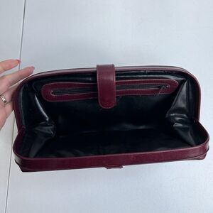 Sakowitz Saks Clutch Cranberry Marlot Burgundy Italian Leather Handbag Italy