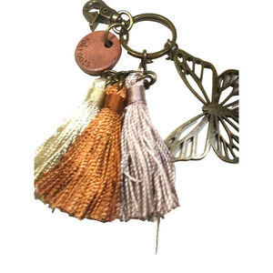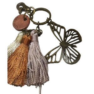Sakroot Keychain Purse Clip Butterfly Tassels Brown Rust Cream