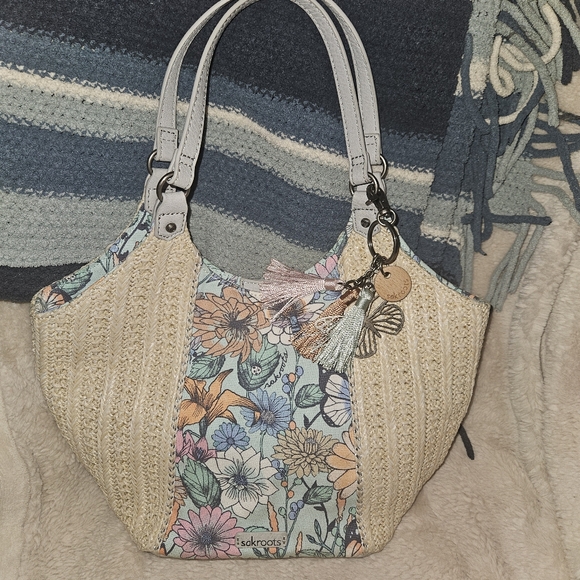 Bag is gently used maybe once great shape great spring summer bag. has handle straps as well as over the shoulder strap