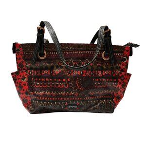 Sakroots Actop Zip Satchel Purse Shoulder Bag Red Black