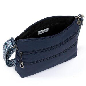 SAKROOTS ARTIST CIRCLE BASIC CROSSBODY IN ECO TWILL, ADJUSTABLE CROSSBODY STRAP, DARK BLUE