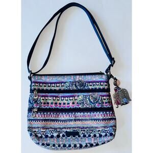 Featuring an exclusive and vibrant print, this Sakroots Basic Crossbody keeps you stylishly on the go. Perfectly proportioned to hold all your essentials in its myriad pockets and compartments, it's ideal for music festivals, sightseeing, or just running errands. This fun-yet-functional style arrives with an adjustable Repreve webbing strap for secure, hands-free utility.