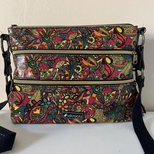 Sakroots Basic Double Zip Printed Coated Canvas Crossbody Bag in Rainbow Spirit Desert. Very good preowned condition, gently worn and minimal signs of wear - please see pictures.