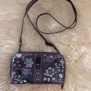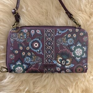 Sakroots Burgundy Floral Cell Wallet Crossbody Bag