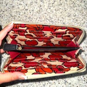 Stylish wallet with a unique beige and black pattern. Perfect for any occasion.