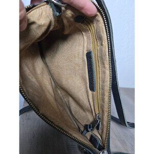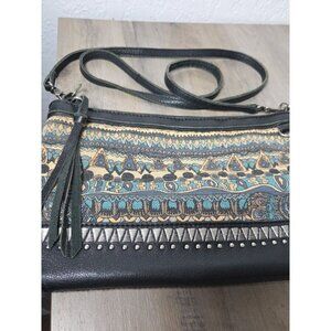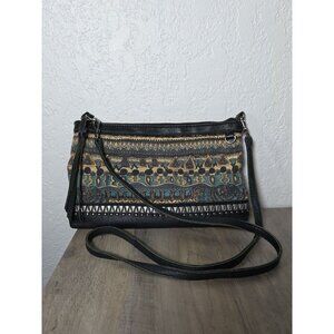 Sakroots Crossbody Leather Handbag Black Tapestry Zip Top