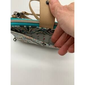 Sakroots Crossbody Purse Tech Wallet Teal Pattern. In excellent pre-owned condition. See photos for details on condition and measurements.