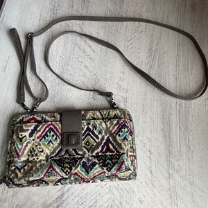 Sakroots Crossbody Purse Wallet clutch gray multicolored adjustable bag