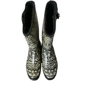 Sakroots Faux Fur Lined Wellington Rain Boots Sz 8 Black, Gray, White #48S