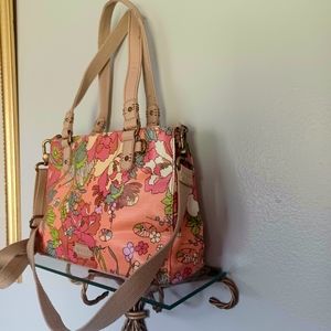 Vibrant floral design. Comfortable shoulder straps. Excellent condition. See last picture for fuller explanation of bag details.