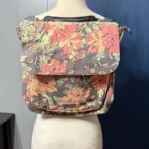 Sakroots Gray and Coral Floral Olympic Convertible Backpack