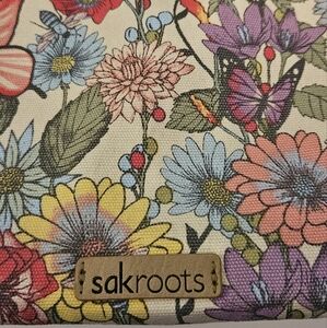 Sakroots Multicolor Floral Tan Straw boho Slouch Bag