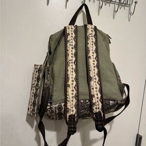 Stylish Sakroots backpack with intricate multicolor patterns. Features a spacious interior and secure zip pocket.