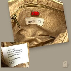 Beautiful and unique Sakroots woven crossbody bag featuring a colorful embroidered owl on natural straw texture with antique brass hardware. Interior includes a zip pocket and two slip pockets with signature printed lining.