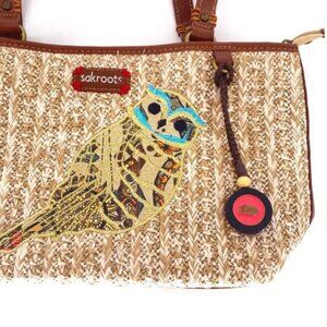 Sakroots Peace Owl Women's Small Straw Satchel Bag - OS