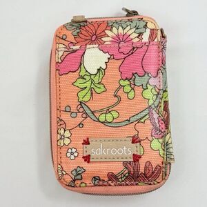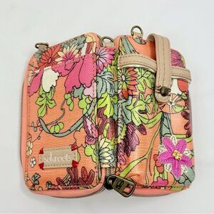 Sakroots Peach Pink Floral Print Mini Convertible Wristlet Crossbody Wallet
