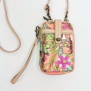 Sakroots Peach Pink Floral Print Mini Convertible Wristlet Crossbody Wallet