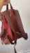 Beautiful Sakroots boho floral backpack featuring a vibrant red multicolor pattern with brown faux leather trim and bead accents. The spacious design includes a main drawstring compartment, front zip pocket, and side slip pockets — perfect for daily use, travel, or festivals. Lined interior with zip and slip pockets for easy organization.