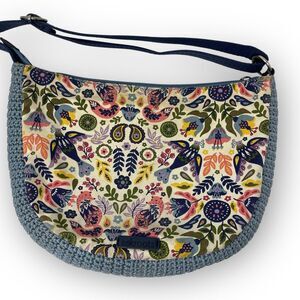 Sakroots The Enchanted Forest Canvas Crochet Woven Crossbody Bag Purse Blue
