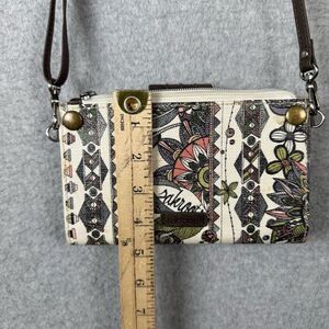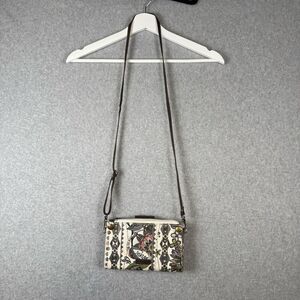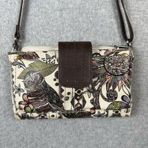 Sakroots Womens Vegan Leather Owl Print Crossbody Purse Wallet Cream Brown