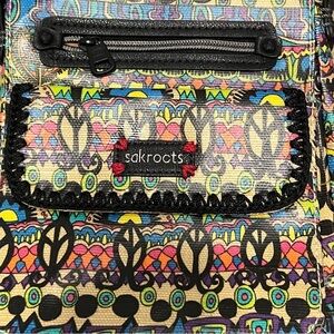 Sakroots by The Sak Small Flap Messenger Peace Signs Coated Canvas