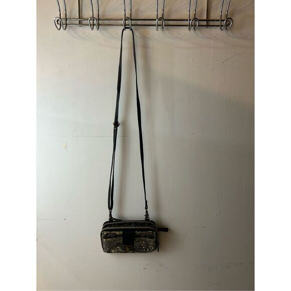 Sakroots crossbody wallet black gray flowers wristlet 4"x6"