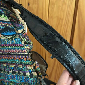 Sakroots flap backpack is stylish and functional for any woman. Shoulder strap is showing wear and tear.