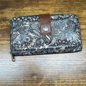 PEELING around the Brand on the Front. Instead has stains. Sakroots Artist Zip Around Wallet Navy Blue White Floral Spirit Desert