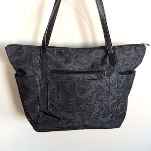 Sakroots Large Travel/Laptop Tote Gray/Black Floral Pattern NWOT