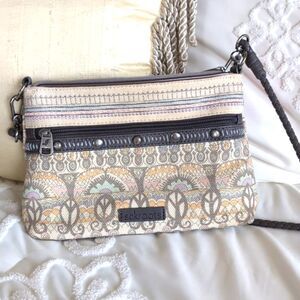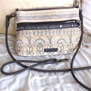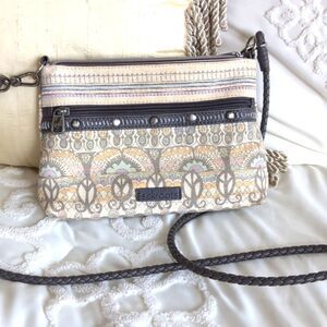 Sakroots Artists Circle Mini Campus One World Print Braided Straps Convertable Crossbody Shoulder Wristlet Clutch Bag