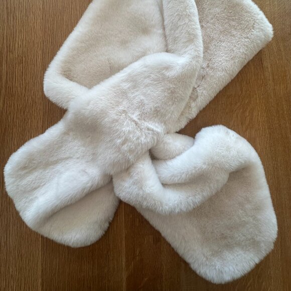 Brand New - never worn. Beautifully soft bright white faux fur scarf with satin lining.