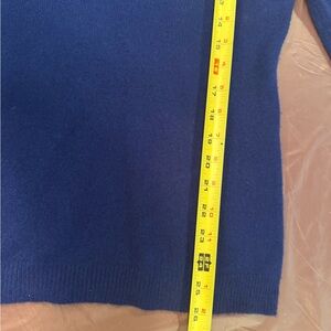 EUC Saks 5th Avenue private label cashmere V neck long sleeve sweater with ruffle detail at neck Royal Blue Size Large (see pics for measurements) 100% Cashmere