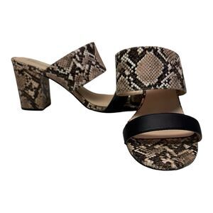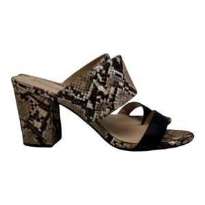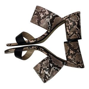 Saks 5th Avenue Snake Print Leather Strappy with Block Heel Sandal Shoes Sz 10M