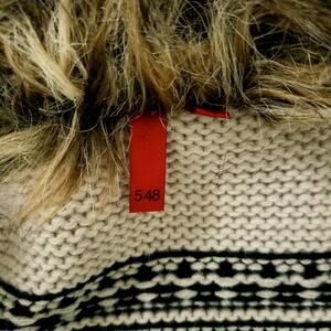Saks 5th Avenue Wool Blend Open Cardigan Faux Fur Sweater Stripe Sleeveless