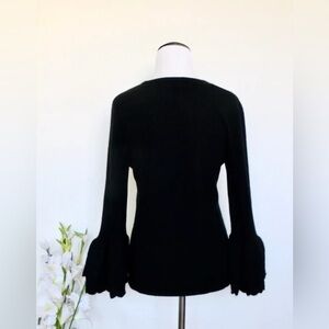 Saks Fifth Ave 100% Cashmere Sweater Tiered Ruffle Ruffle Sleeve Black SZ S