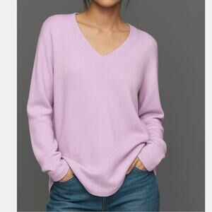 Saks Fifth Ave Black Label XL Oversized Luxury Lilac Cashmere V-Neck Sweater