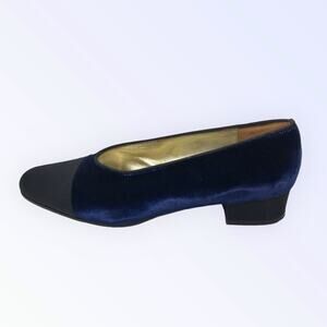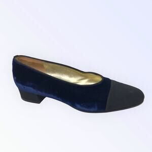 Saks Fifth Ave Blue Velvet & Black Evening Kitten Heels Almond Toe Size 8B