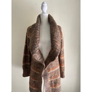 Saks Fifth Ave Cardigan Wool Italy Brown Multi Sweater Winter Old Money