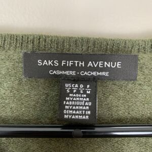 Saks Fifth Ave Cashmere Soft Pullover V Neck Green Sweater Womens Small. Good pre-owned condition. Some wear throughout. See photos for details.