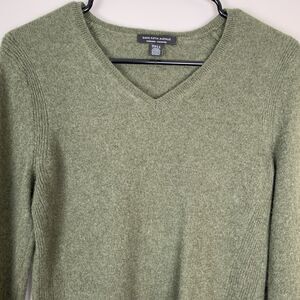 Saks Fifth Ave Cashmere Soft Pullover V Neck Green Sweater Womens Small