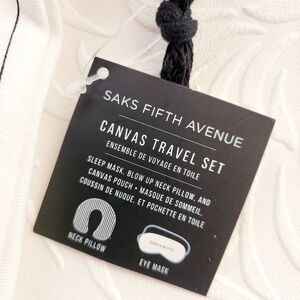 Sax Fifth Avenue Canvas Sleep Set neck pillow and eye cover, and Coach body lotion lait pour la Corp bundle comes packaged for gift giving or a personal treat