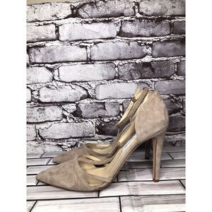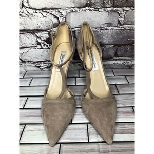 Saks Fifth Ave Taupe Suede Leather Pointed Toe Strap Heels Women Sz 9.5B US/40EU