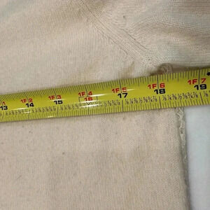 Lovely sweater by Saks Fifth Avenue. Wool & cashmere blend. Short sleeve and sheer lace back. Ivory. Women’s size medium. See photos for measurements
