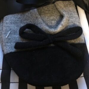 Saks Fifth Avenue Wool Cashmere Slipper Socks with Polyester Drawstring Stripe Gift Bag Wrapped in Black Satin Ribbon
