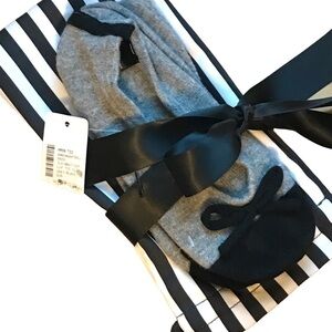 Saks Fifth Ave Womens Cashmere Wool Slipper Socks S/M Gray Stripe Gift Bag NEW