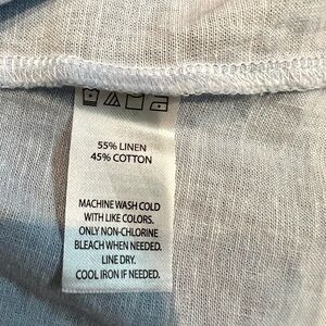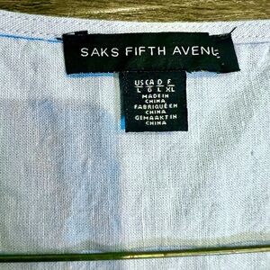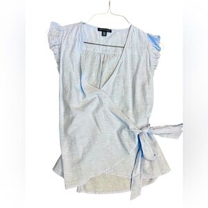 Saks Fifth Ave, pale blue linen blend wrap shirt with ruffle sleeves, size L.